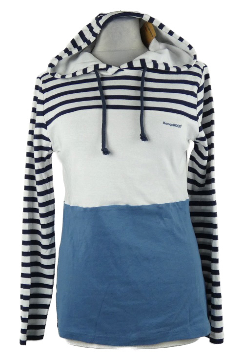 • Dámská bílo-tmavomodro-modrá pruhovaná mikina s kapucí KangaRoos