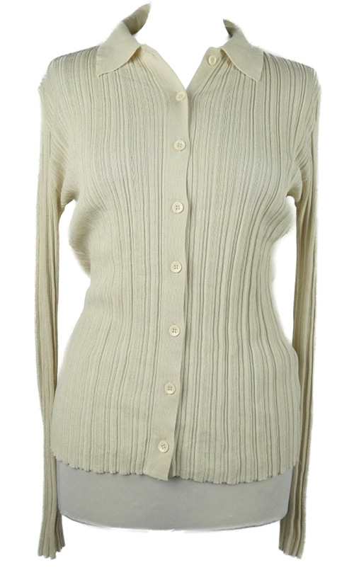 Dámský béžový žebrovaný propínací svetr s límečkem H&M