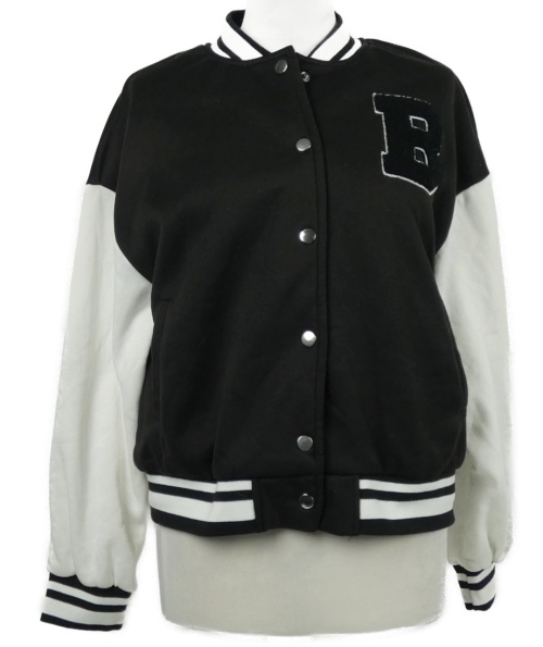 Dámská černo-bílá propínací baseballová mikina s pruhy Shein