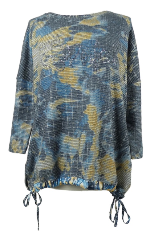 • Dámské modro-béžové vzorované mikinotriko s nápisem z kamínků Liberty