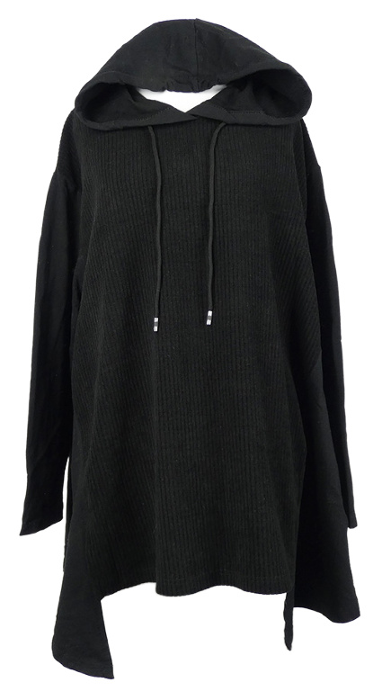 Dámská černá žebrovaná mikinová tunika s kapucí