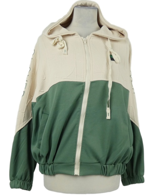 Dámská béžovo-zelená sportovní propínací mikina s kapucí