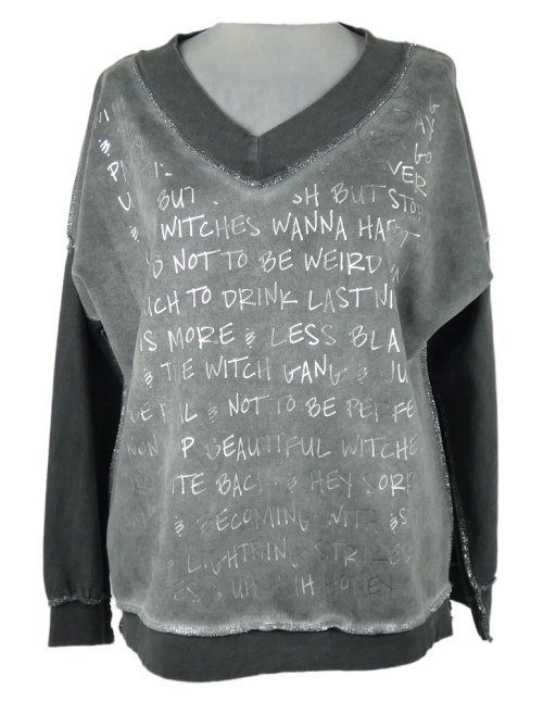 Dámská šedo-tmavošedá semišovo/tepláková mikina s nápisem zn