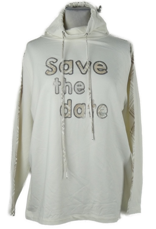 Dámská smetanovo-vzorovaná mikina s nápisem a límcem