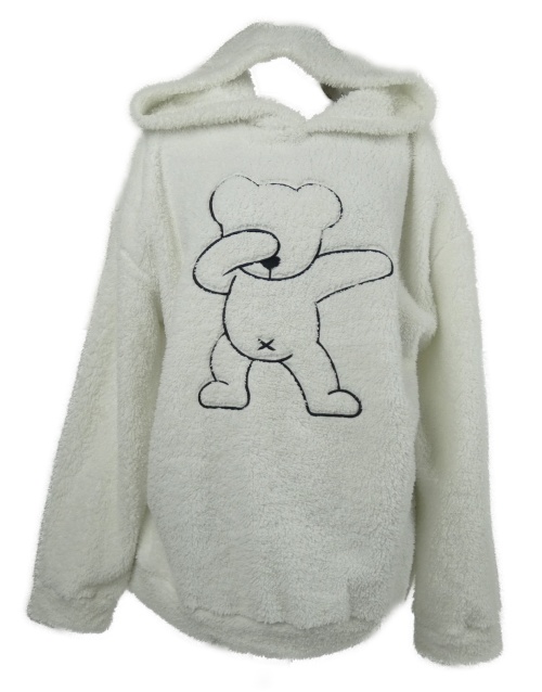 Dámská bílá chlupatá oversized mikina s medvídkem a kapucí Shein