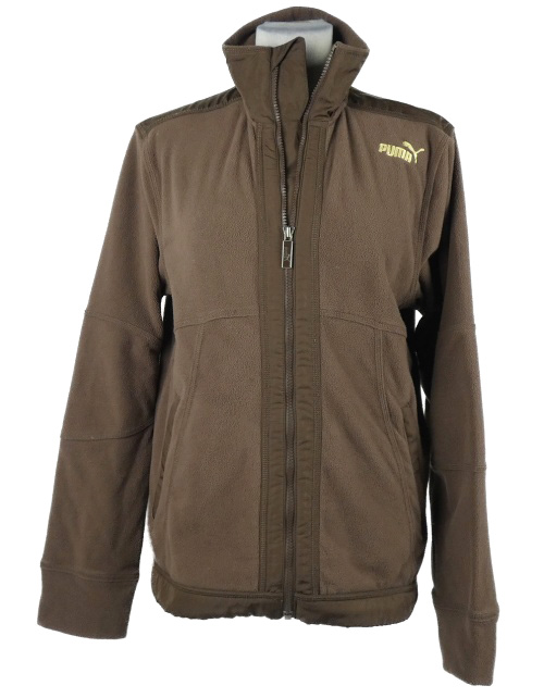 Dámská hnědá fleecová propínací mikina s logem a rolákem Puma