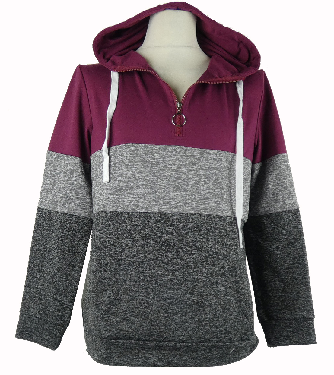 • Dámská černo-šedo-purpurová melírovaná pruhovaná mikina s kapucí