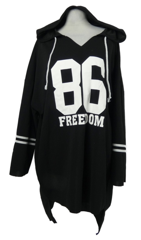 Dámská černá mikinová tunika s číslem a kapucí Shein