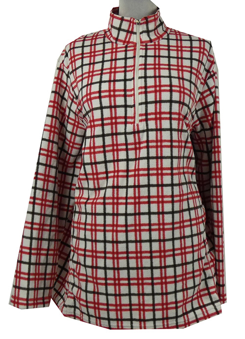 • Dámská bílo-červeno-šedá kostkovaná fleecová propínací mikina