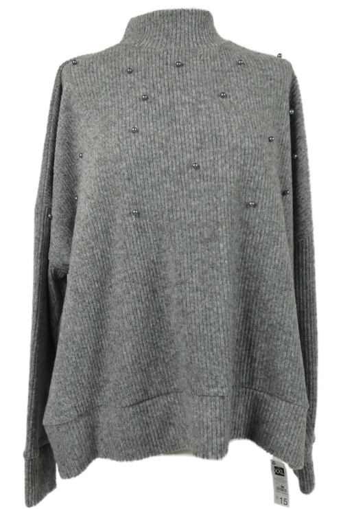 Nové - Dámská šedá žebrovaná fleecová mikina s korálky a stojáčkem Dunnes