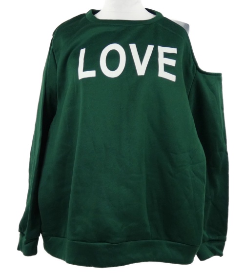Dámská tmavozelená mikina s nápisem a volným ramenem