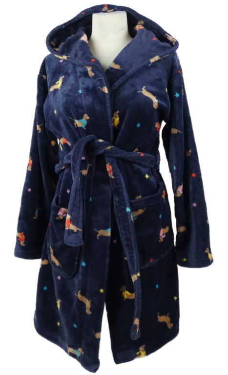Dámský tmavomodrý chlupatý župan s pejsky a kapucí