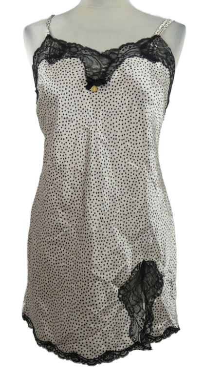 Dámská smetanovo-černá puntíkovaná saténová noční košile s krajkou Jasper Conran