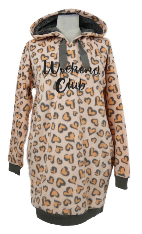 Dámské růžové vzorované fleecové domácí šaty s nápisem a kapucí Esmara