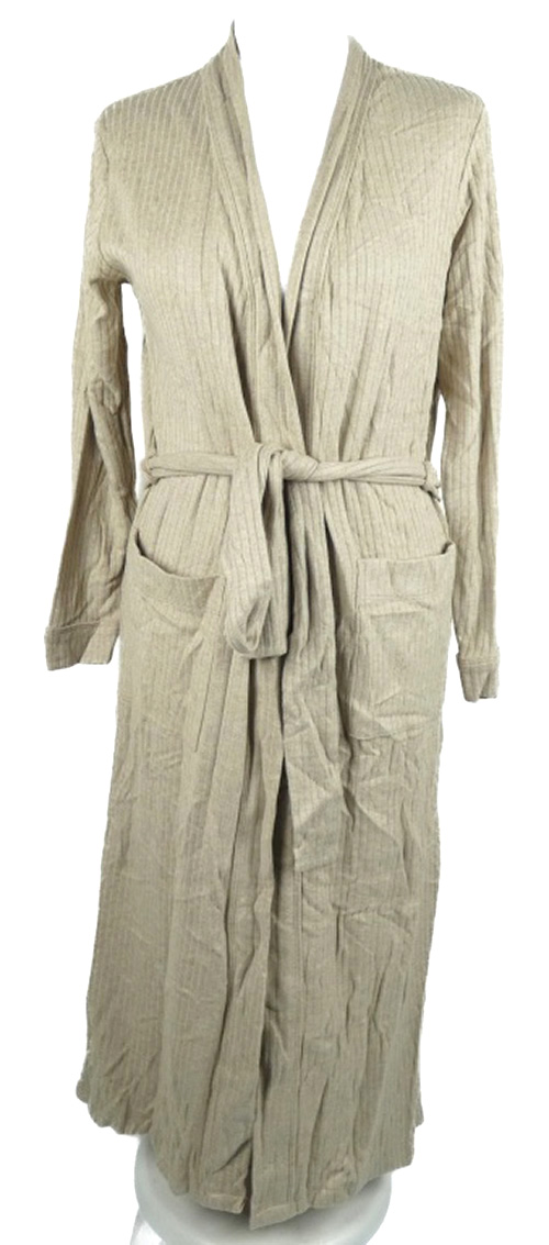 Dámský béžový žebrovaný pletený župan s páskem M&S