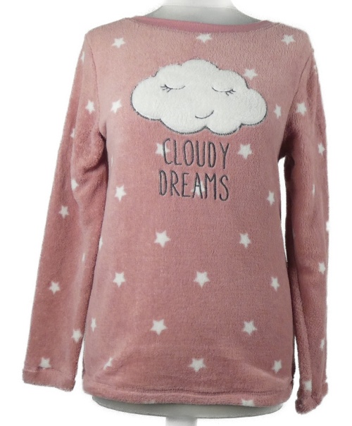 Dámské růžové hvězdičkované plyšové pyžamové triko Janina