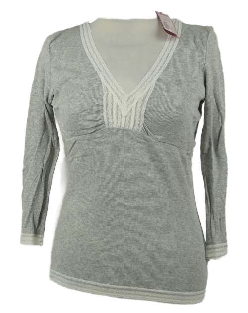 Nové - Dámské šedé žebrované pyžamové triko s krajkou Monsoon