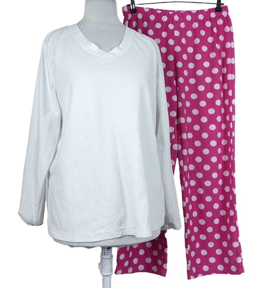 Dámské bílo-růžové puntíkované fleecové pyžamo F&F