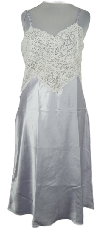 Dámské světlefialové saténové šaty s krajkovým živůtkem