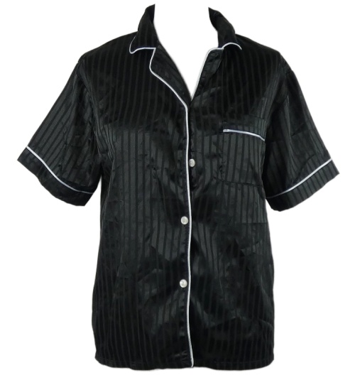 Dámský černý proužkovaný saténový pyžamový kabátek