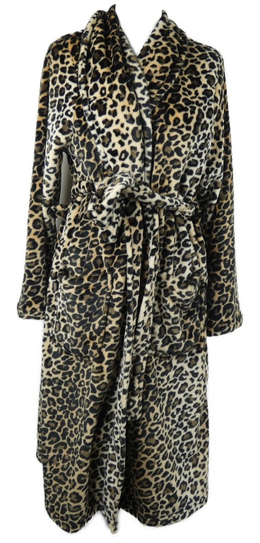 Dámský černo-béžový vzorovaný plyšový župan s páskem Very