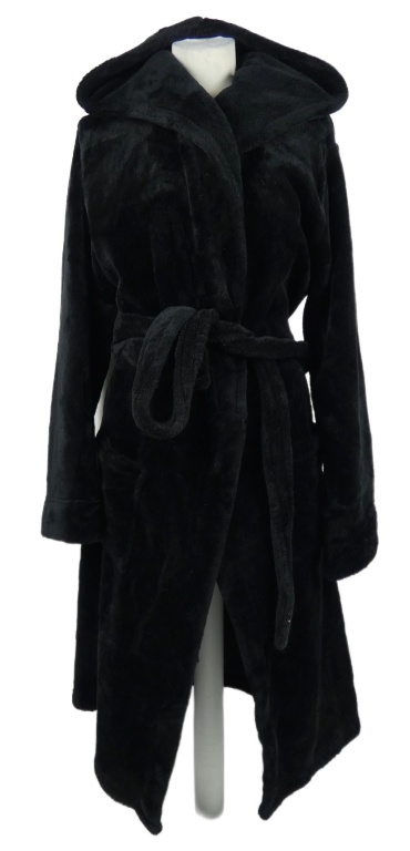 Dámský černý chlupatý župan s páskem a kapucí M&S