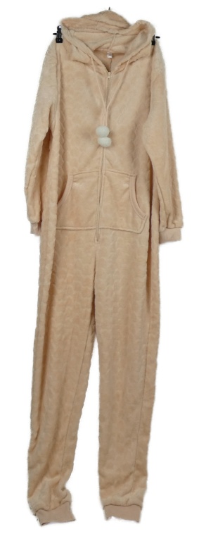 Dámská světlerůžová vzorovaná plyšová kombinéza s kapucí