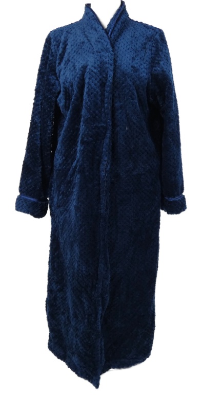 Dámský tmavomodrý vzorovaný plyšový propínací župan