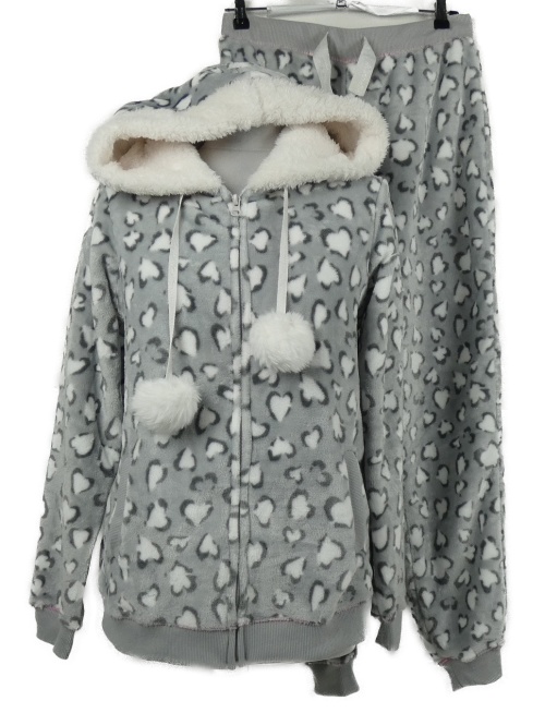2set - Dámská šedá vzorovaná plyšová domácí tepláková souprava s kapucí Studio