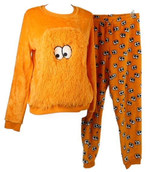 Dámské oranžové plyšové pyžamo s očima