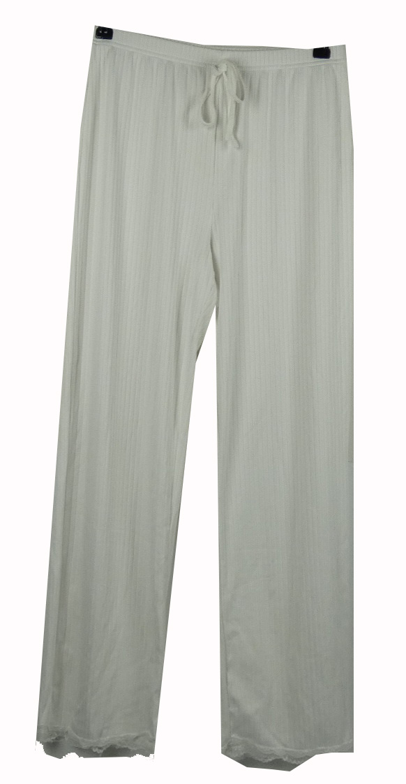 Dámské bílé žebrované volné pyžamové kalhoty s krajkou