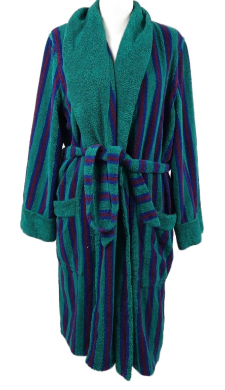 Dámský zeleno-modro-červený pruhovaný froté župan s páskem