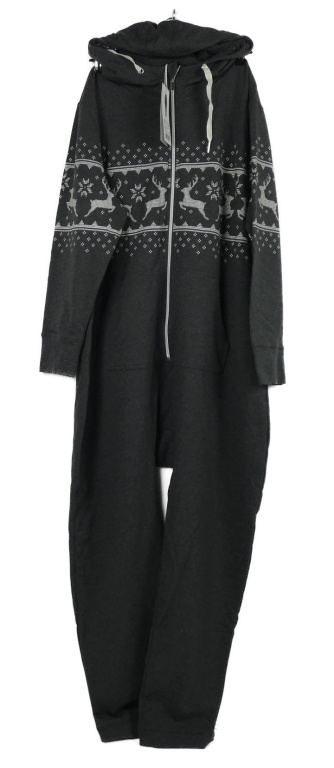 Dámská tmavošedá vzorovaná tepláková kombinéza s jeleny a kapucí Tchibo