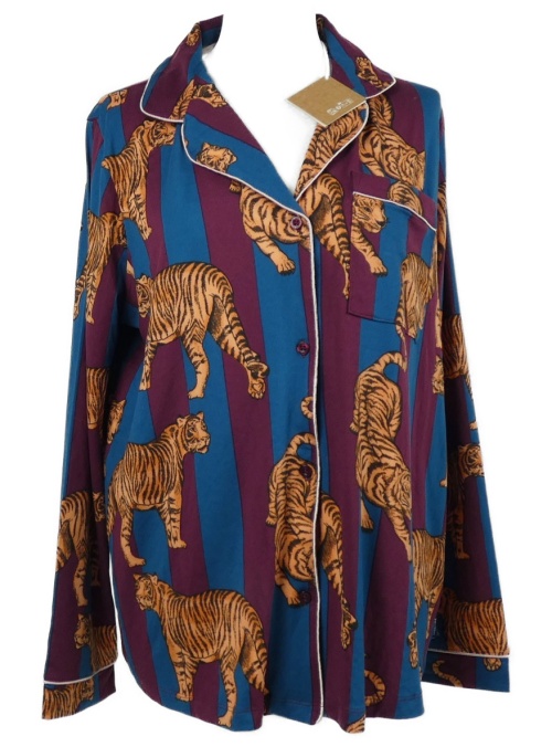 Nové - Dámská tmavomodro-vínový pruhovaný pyžamový kabátek s tygry Chelsea Peers