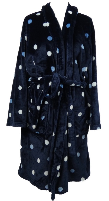 Dámský tmavomodrý puntíkovaný plyšový župan s páskem George