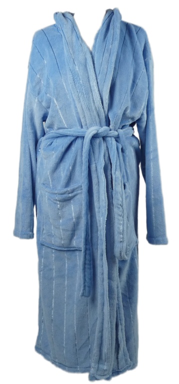 Dámský světlemodrý proužkovaný chlupatý župan s páskem