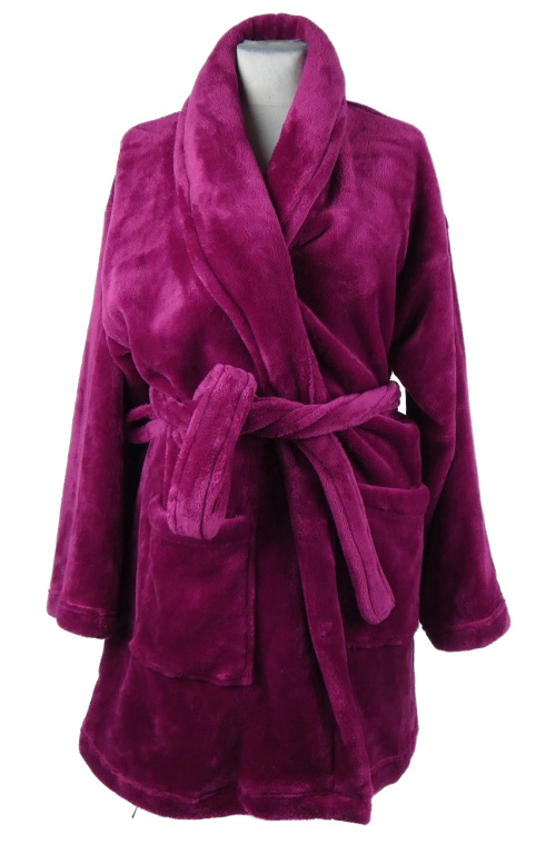 Dámský purpurový chlupatý župan s páskem