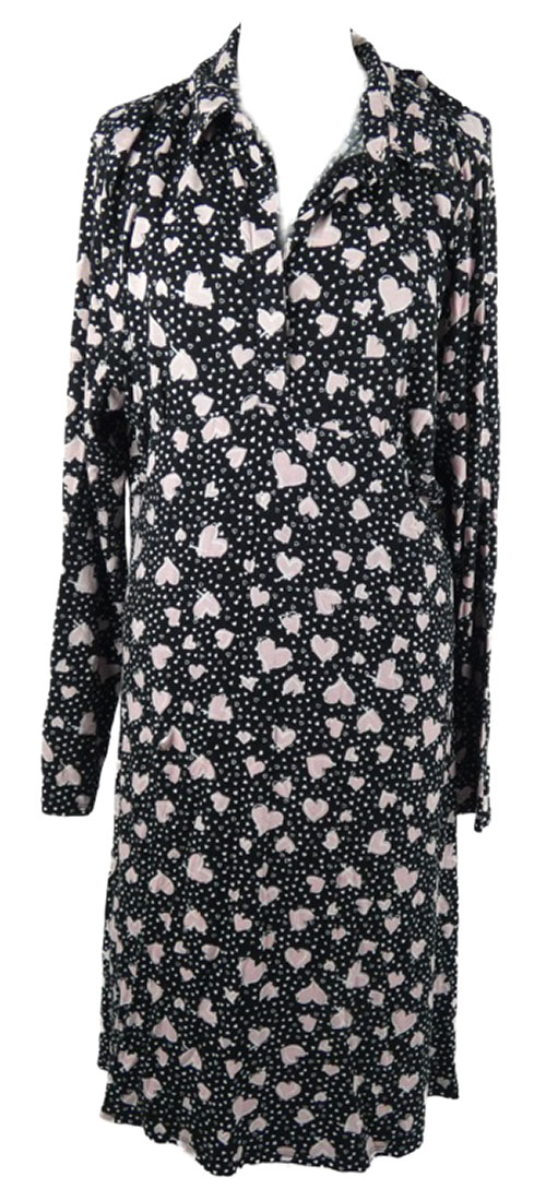 Dámská černo-růžová srdíčkovaná noční košile