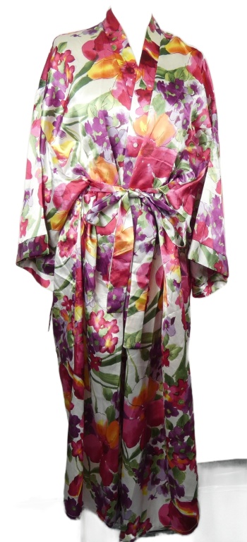 Dámský bílo-barevný květovaný saténový župan s páskem House of Bath