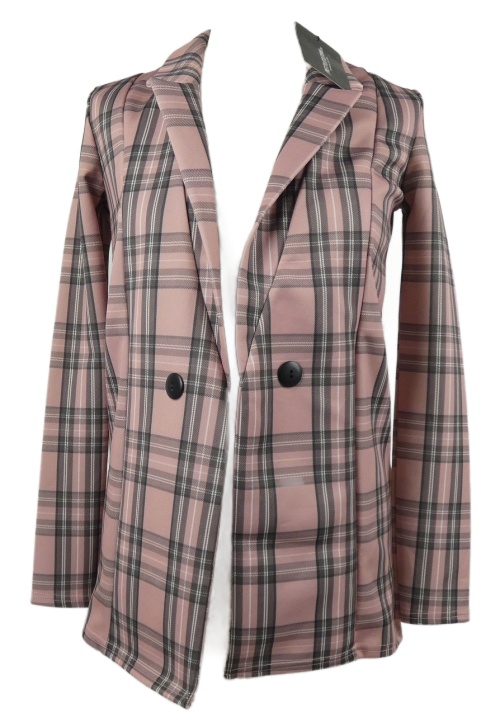 • Dámský růžovo-hnědý kostkovaný blejzr PrettyLittle Thing