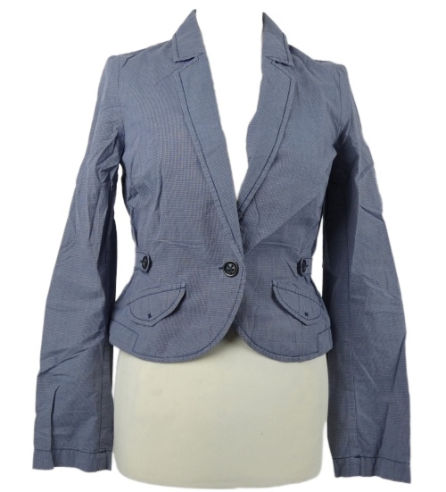 Dámské modré vzorované plátěné crop sako Oui