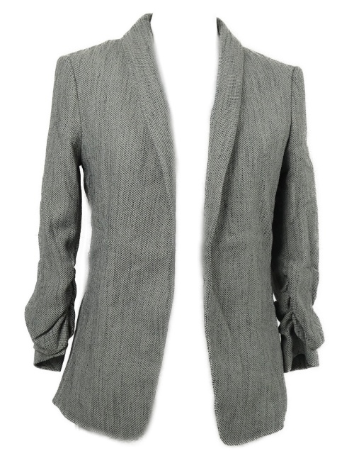 Dámský šedo-černý melírovaný sakový cardigán s nařasenými rukávy H&M