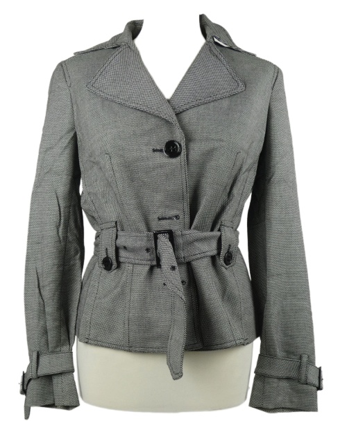 • Dámský černo-bílý vzorovaný vlněný kabátek s páskem Esprit