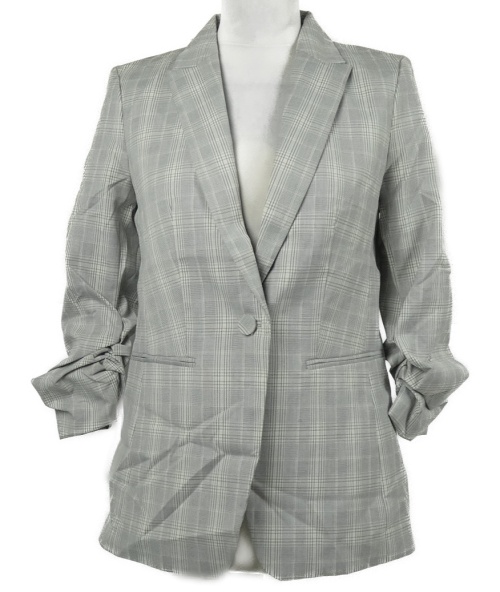 Dámské šedé kostkované sako s řasenými rukávy H&M
