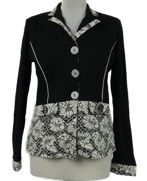 Dámské černo-bílé teplákové sako s květy