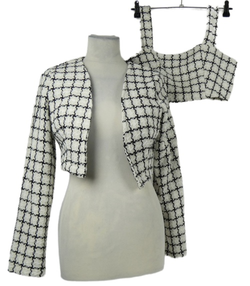 2set - Dámské smetanovo-černé vzorované pletené sáčkové bolerko + crop top Shein
