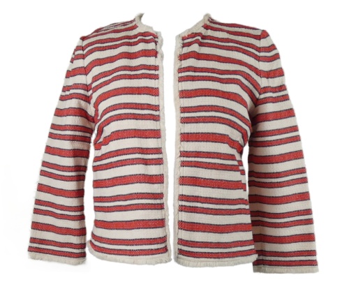 • Dámský červeno-smetanový pruhovaný pletený cardigán Hallhuber