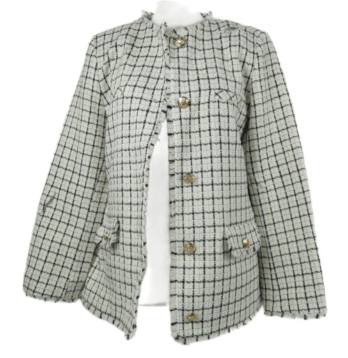 • Dámský bílo-černý kostkovaný pletený sakový cardigán s gombíky Dunnes