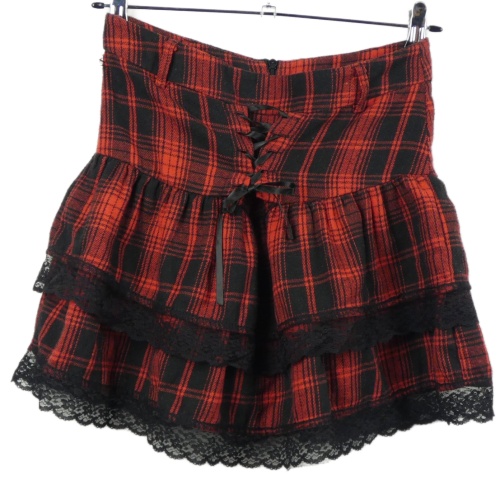 Dámská červeno-črná ksotkovaná sukně s volánky a krajkou Shein