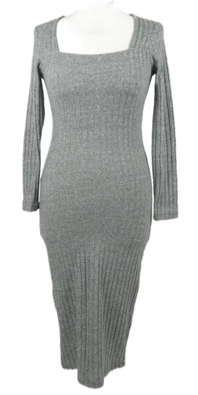 Nové - Dámské šedé žebrované úpletové midi šaty Primark